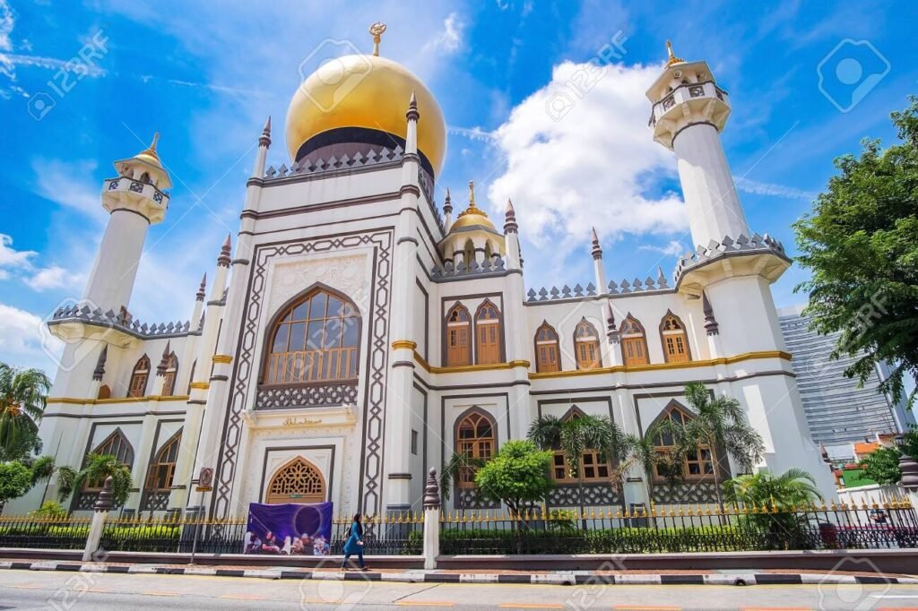 Masjid Sultan, Singapore Mosque in historic Kampong Glam with golden dome and huge prayer hall,the focal point for Singaporeโ€™s Muslim community, landmark and popular for tourist attractions